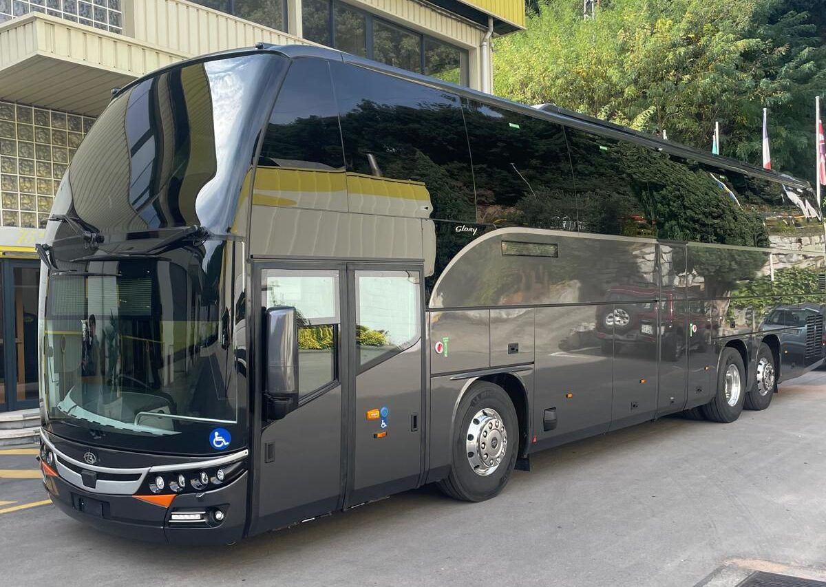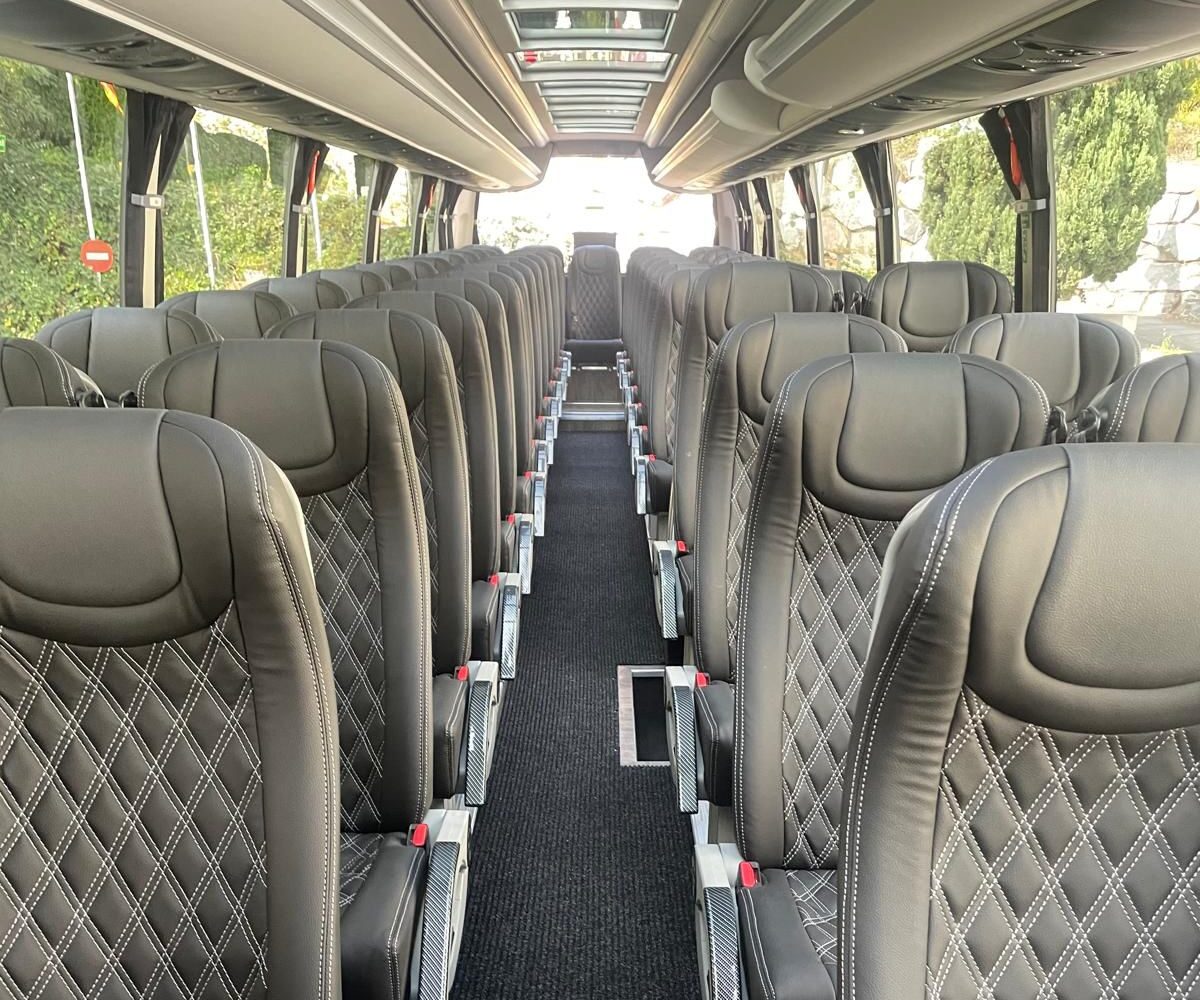 G2 is a Scania Beulas Glory. It has 45 passenger seats, and is a full spec team coach.