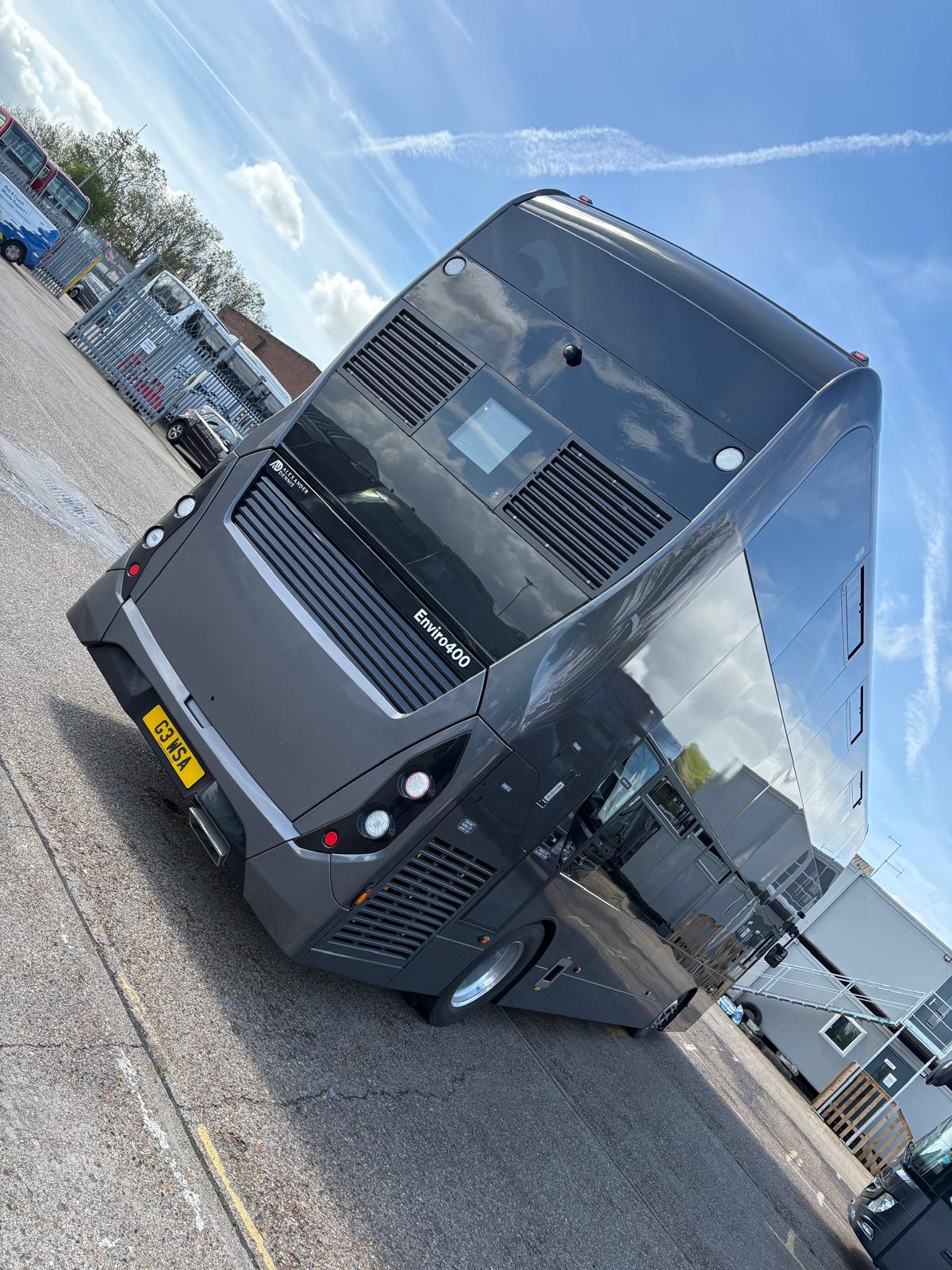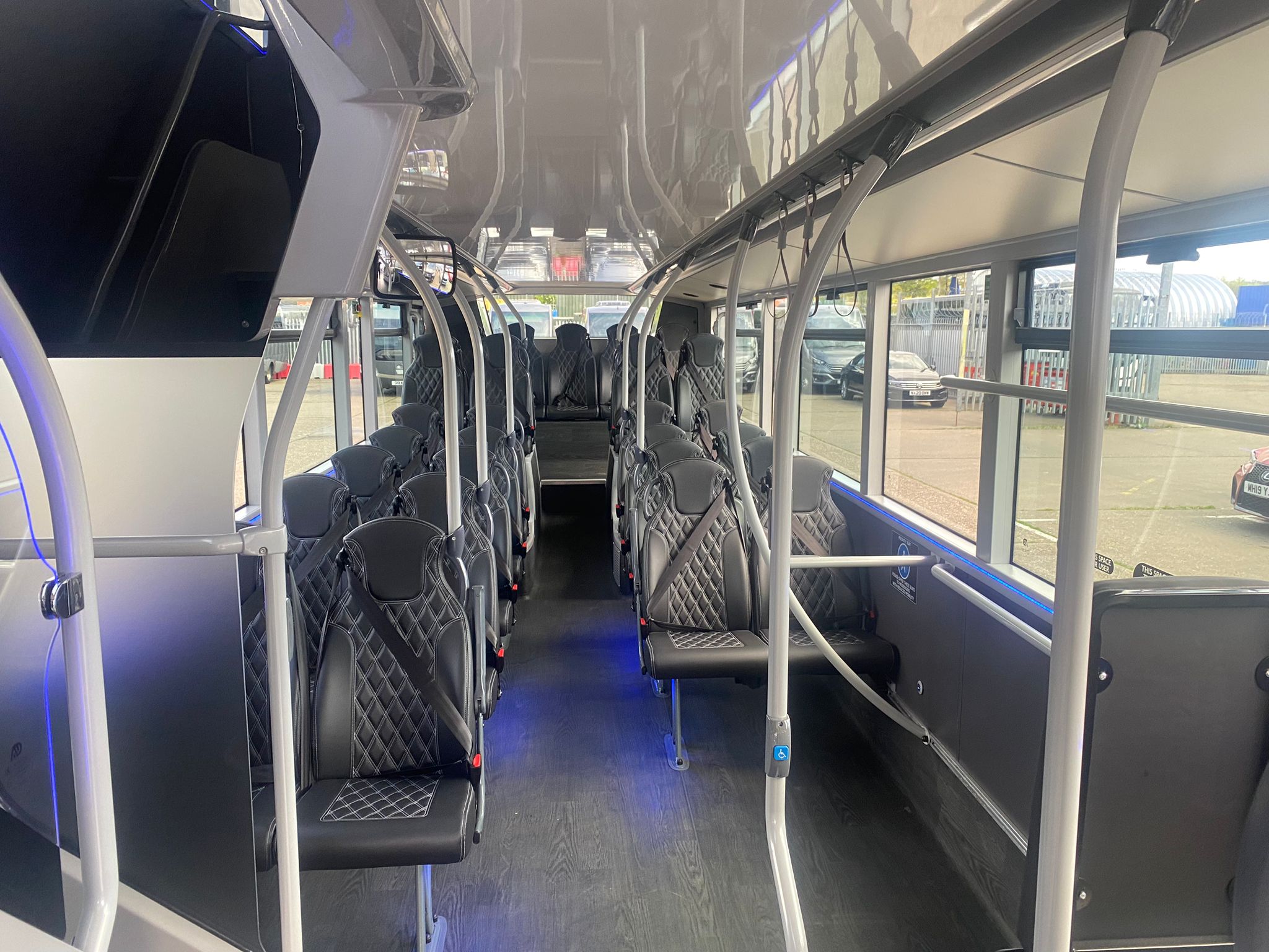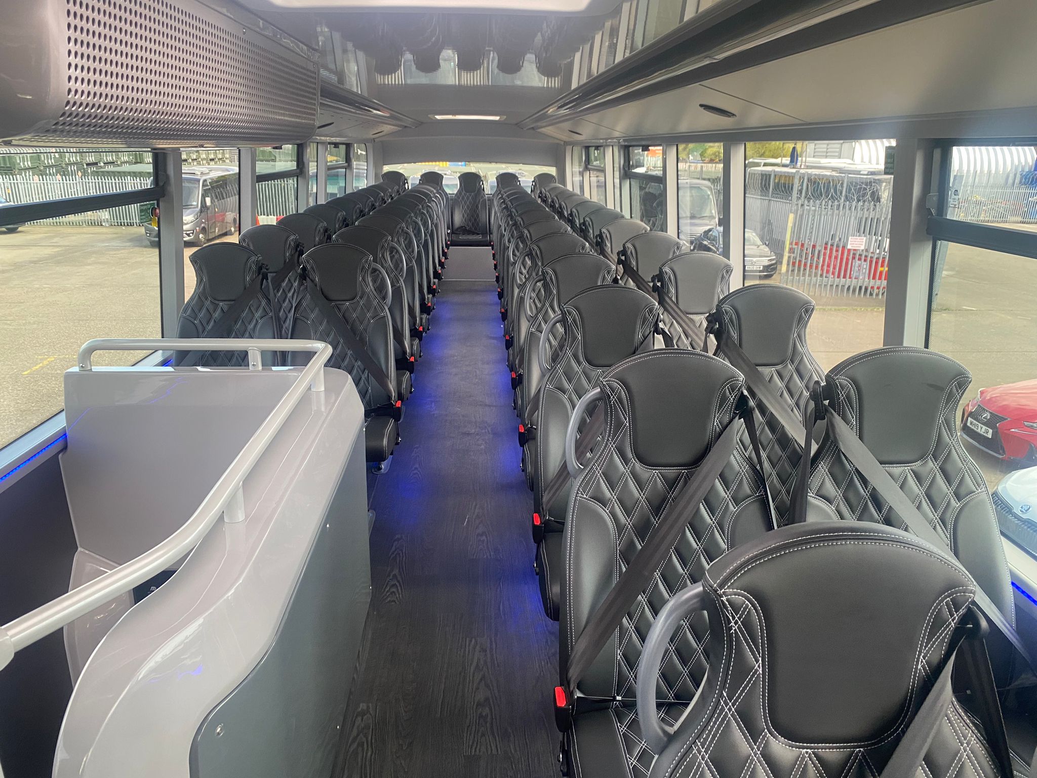 This Alexander Dennis Enviro 400 is the newest addition to our fleet and is a high-capacity people mover. Customised for extra luxury, specifically for Whites of St Albans, G3 is an 85 seater with 12 standees and ideal for short-distance local private hire or corporate shuttles.